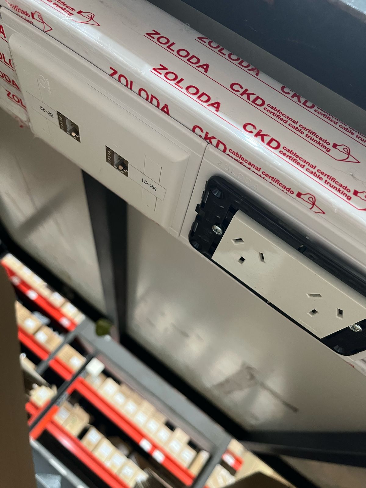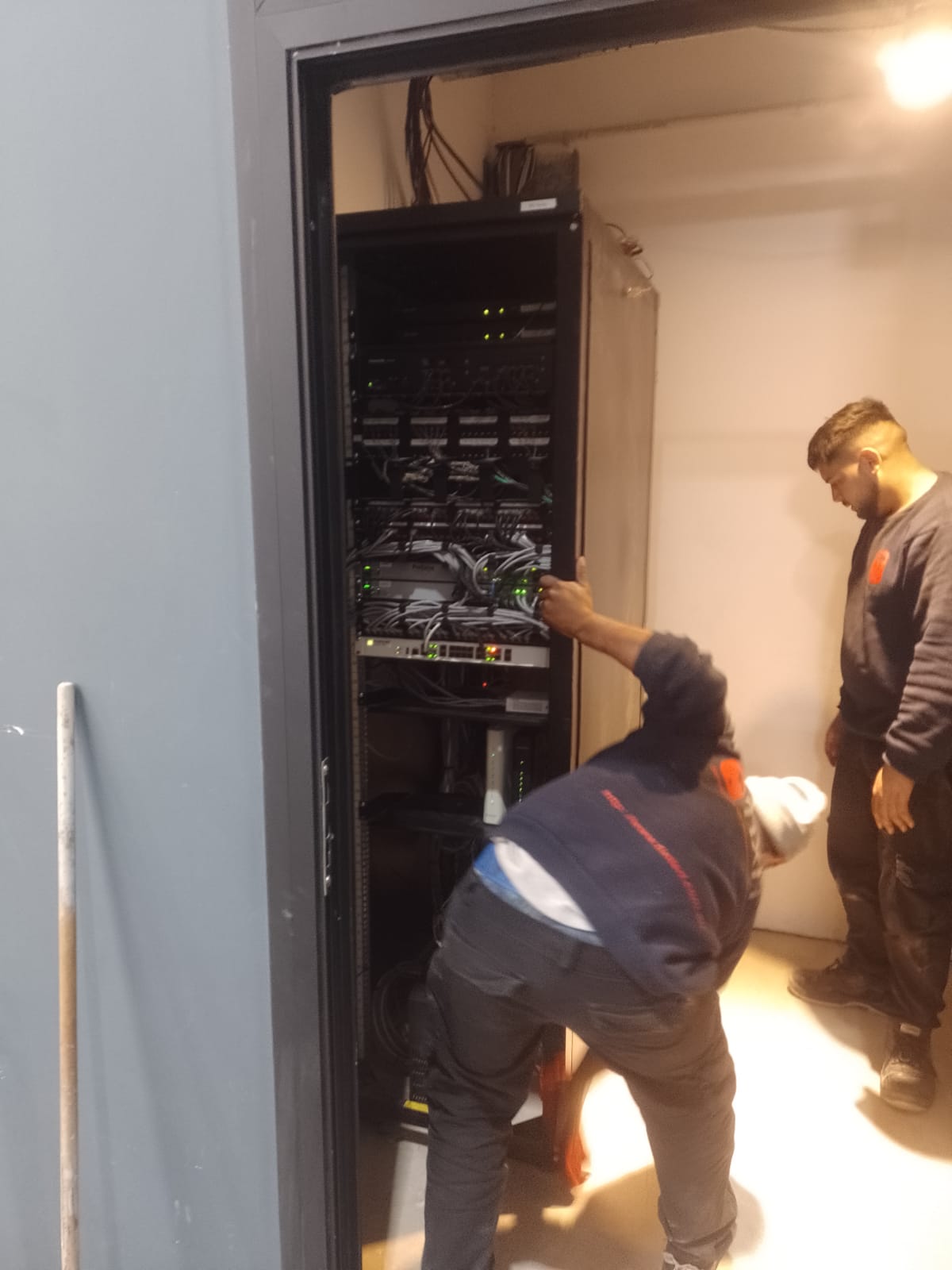 Cableado de puestos de datos y tomas eléctricos con reordenamiento de rack existente.